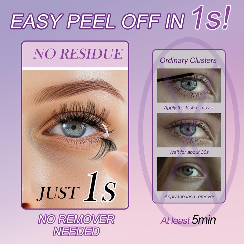 - 【PRESS-ON FALSIES EYELASH CLUSTERS】Built-in adhesive strip eliminates the need for glue and waiting time. Enjoy a mess-free, waterproof application that stays secure all day and removes easily.