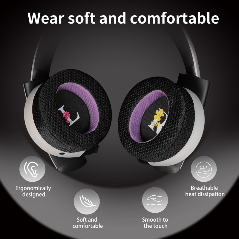 Jomwag Replacement Earpads for Alienware AW510H/AW310H, Breathable Mesh Black/Purple Ear Pads