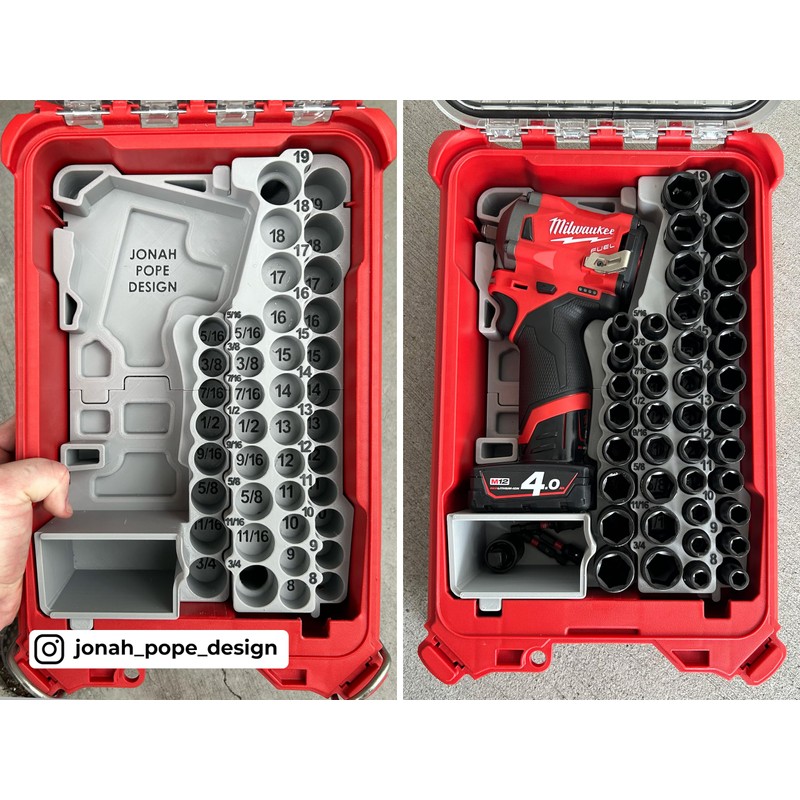 Jonah Pope Design 3d Printed Insert designed for GEN1 M12 Stubby 3/8" Impact and Packout Organizer (Does Not Fit Boot) Insert Only (Industrial Gray)