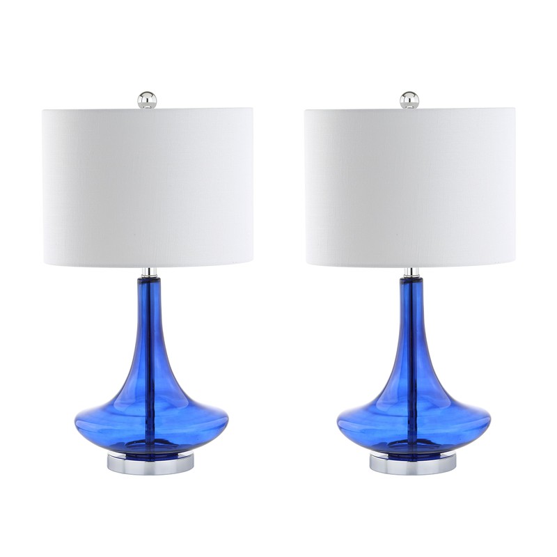 JONATHAN Y JYL1081D-SET2 Cecile 25.5" Glass Teardrop LED Table Lamp Contemporary,Transitional for Bedroom, Living Room, Office, College Dorm, Coffee Table, Bookcase, Cobalt/Chrome(Setof2)
