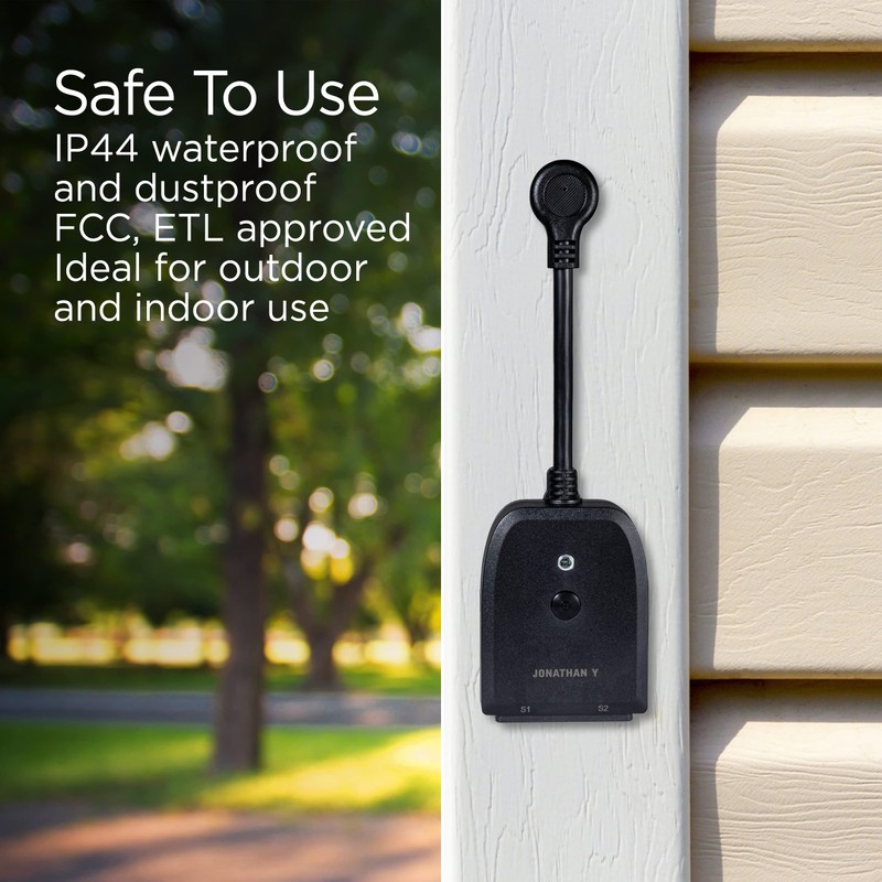 JONATHAN Y PLG1003A Outdoor Smart Dual Plug, WiFi Remote App Control, Alexa, Google Home Assistant Compatible, No Hub Required