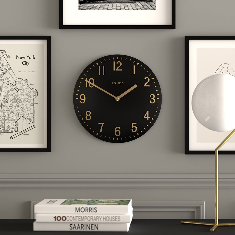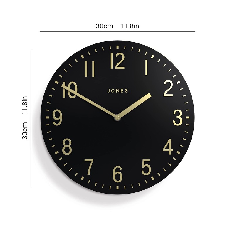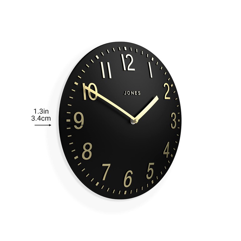 Jones Clocks® Chilli Convex Wall Clock – Round Convex Clock – Exposed Wall Clock - Modern Wall Clock - Minimal Wall Clock - Unique Clock - Perfect as a Kitchen clock,- 30 cm Clock (Matte Black)