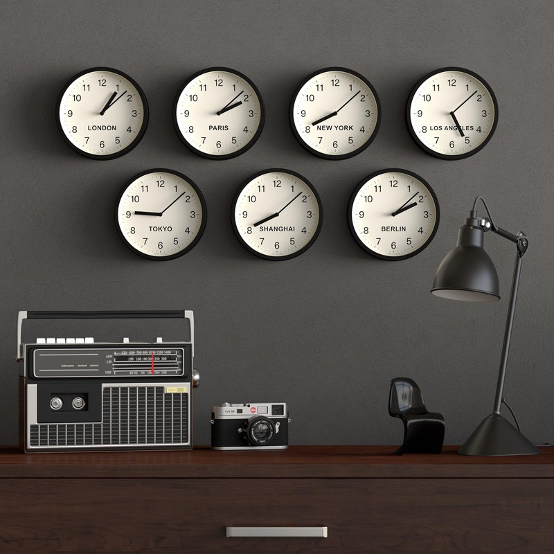 Jones Clocks® Paris Time Zone wall clock | Small modern round clock | 20cm | Black | Easy to read numbers | Ideal for kitchen, living room, office or any small space