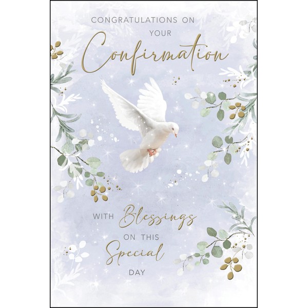 - RELIGIOUS DESIGN: This lovely card features the message 'Congratulations on your Confirmation - with blessings on this special day' and is finished with embossed, metallic gold foil details.