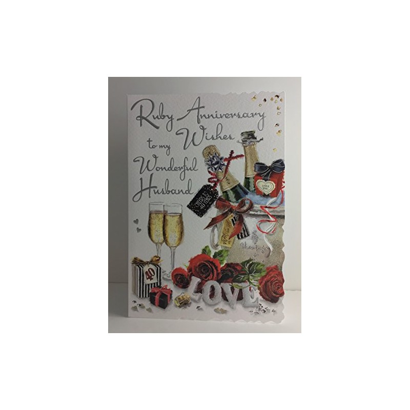 - Ruby anniversary wishes to my wonderful Husband card with traditional champagne, flowers and presents love 40 years design