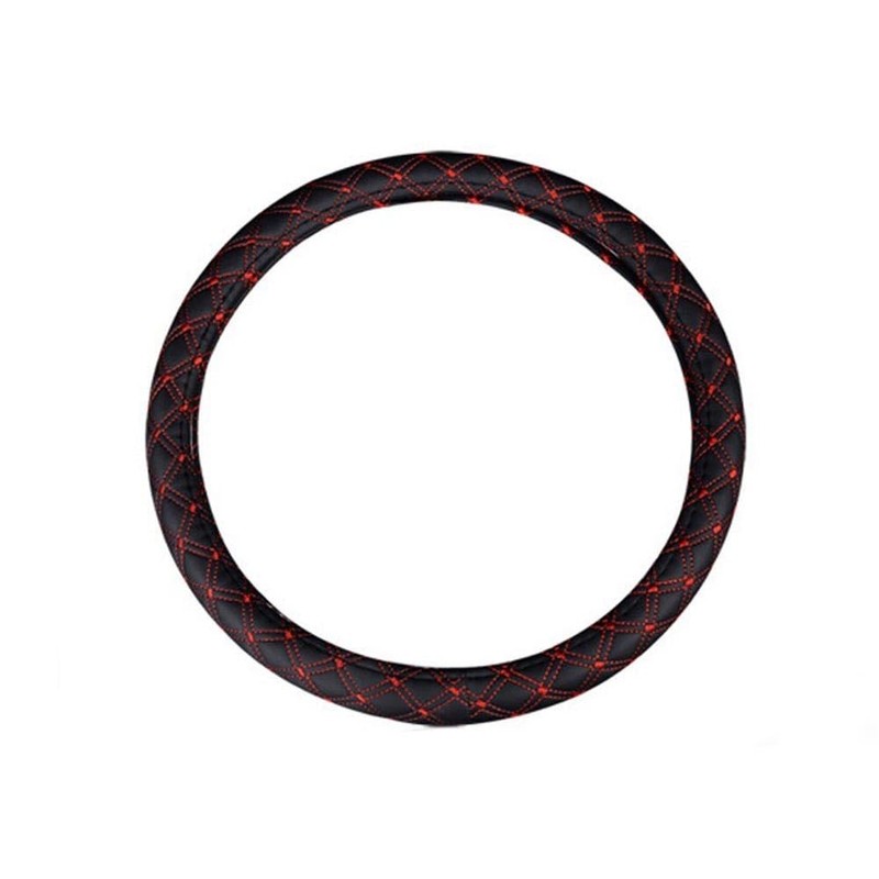 Jonscart - Funda de Piel para Volante de Coche de 15 Pulgadas, sin Olor, Color Negro con Rojo