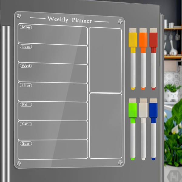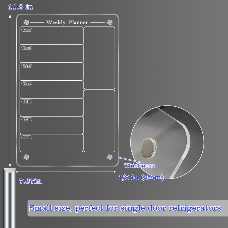 - 【Enjoy Life in Order】: This magnetic acrylic weekly calendar for fridge helps you record weekly meal planner and keep your life in order.This magnetic menu board for fridge is perfect Mother's Day/New year/Christmas/Father’s Day/birthday gift ideas for friends, families, kids, students, office work, colleagues, mother/mom, father/dad, back to school, off to college, party decorations supplies.