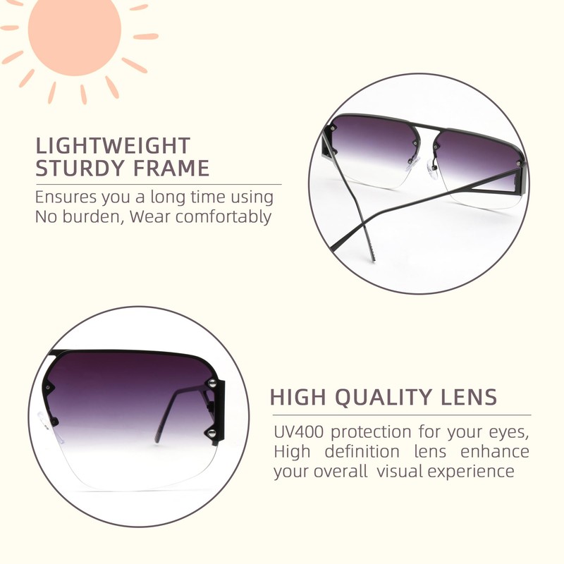 - ELEVATE YOUR STYLE: Designer sunglasses with a squared shape, the elegant rimless metal frame is enhanced by the triangular-shaped temples, embellished with four finely polished rhinestones, these retro oversized sunglasses are keeping up closely with the latest vintage fashion trends, reinterpret the classic 1930s aviator silhouette in the modern way.