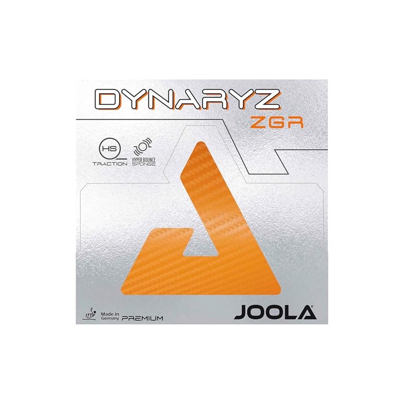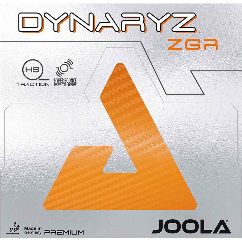 JOOLA Rubber Dynaryz ZGR - plays in his own league! It is the ultimate combination of hyper traction surface and hyper bounce sponge, which makes this coating unique and gives your strokes a quality that has not been possible before. The newly developed, extremely grippy surface structure gives you precision and a lot of effort. The highly dynamic Hyper Bounce Sponge allows you to ignite the turbo at any time.