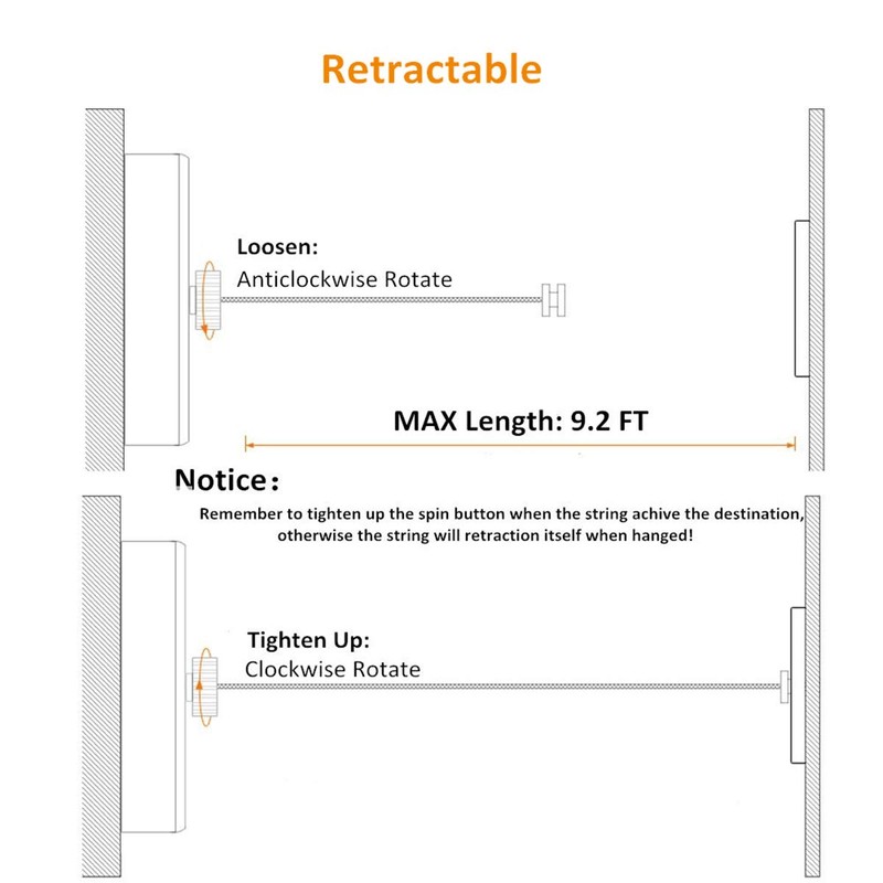 - ✅RETRACTABLE: Adjustable stainless steel laundry line can extend to 9.2 feet.The lock button can be used to lock any length within 9.2 feet.