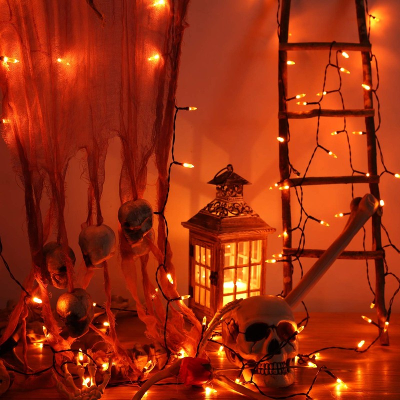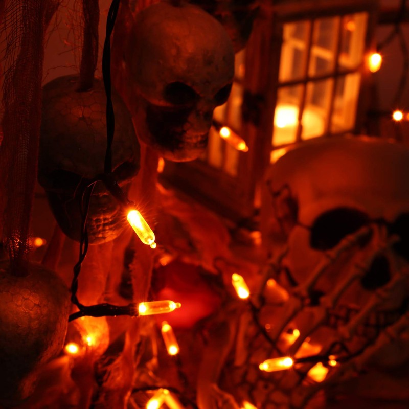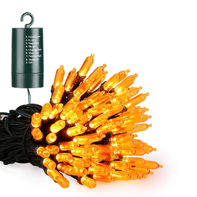 **Battery LED Christmas Lights,33ft 100 LED String Lights Waterproof with 8 Modes & Automatic Timer for Home, Patio, Lawn, Garden, Party and Holiday Decoration** **Specifications:** Total Length:33ft (lead length 0.98ft,lamp spacing 0.33ft) LED Qty: 100 Light Color: Orange Power Supply: 4 * AA battery (NOT INCLUDED) Waterproof Grade: IP65 Timer Included: Yes (Repeat 6 hours on and 18 hours off) Applicable area :Indoor & Outdoor Wire Color: Green(1.6mm copper wire) Safety:Low voltage, non plug-in, low heat emission and safe to touch after many hours of usage. **8 Light Sequences:** 1.Combination 2.In Wave 3.Sequential 4.Slo-Glo 5.Chasing/Flash 6.Slow Fade 7.Twinkle/Flash 8.Steady On **Note:** Timer function will be reactivated every time when you turn on/off or change modes. For example, if you turn on it at 6pm, then change mode at 8 pm, it will work continuously for another 6 hours with the new mode and turn off at 2am in the morning **What's in the box:** 1 x 100 LED Mini String Lights 1 x User Manual
