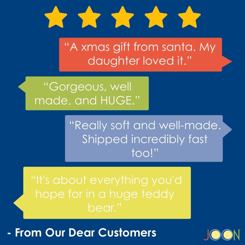 - ❤️ SUPERIOR QUALITY This adorable, loveable JOON Huge Teddy Bear with Ribbon is made with premium craftsmanship, the finest 100% polyester materials and just the right amount of stuffing to provide years of huggable squeezable love! JOON Huge Teddy Bear will be your faithful friend forever.