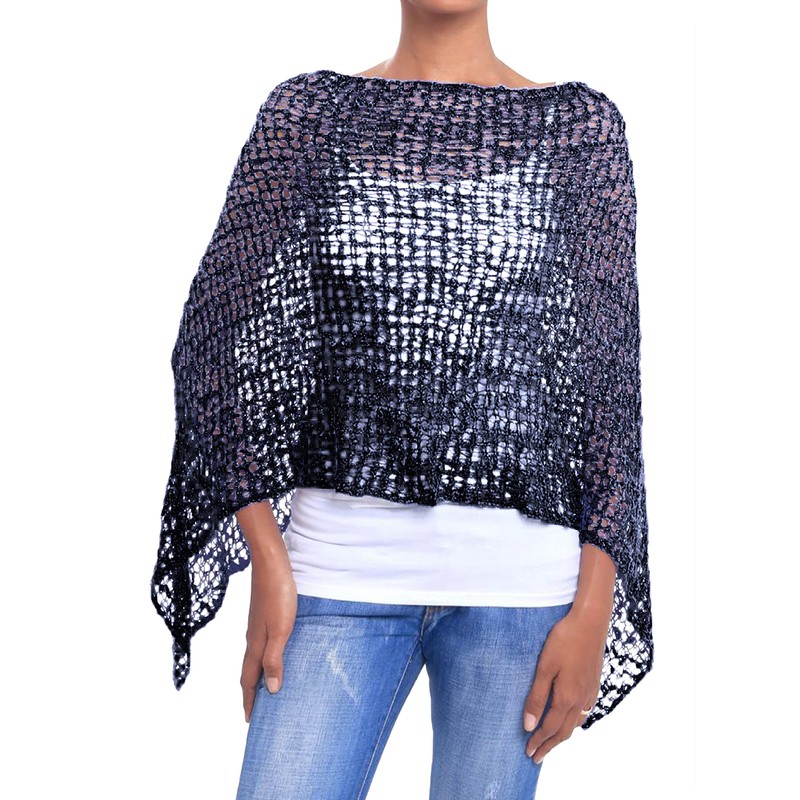 JOPHY & CO. Women Ladies Knitted Mesh Poncho Off Shoulder Summer Spring Lightweight Soft (Code 1511), black, XXL