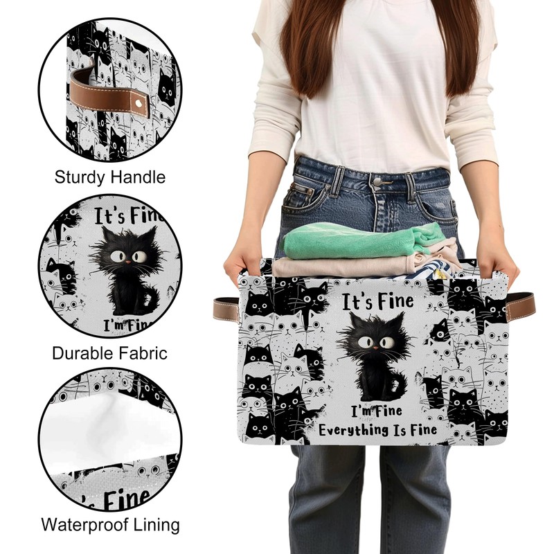 - 【Cat Storage Basket】Our rectangle storage basket is printed with the phrase "It's Fine. I'm Fine. Everything Is Fine." and features cute cats. This stylish and functional storage basket is perfect for organizing your home or playroom