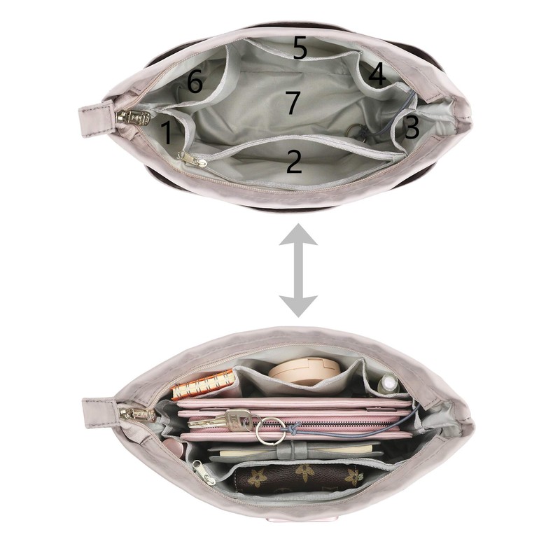 - Function: Many inner and outer pockets can organise your mobile phone, headphone cable, cosmetics, wallet, notebook, etc. Keep your handbag organized and tidy. You can find the desired things immediately. Not easy to sink in. Can hold the shape of your handbag very well.
