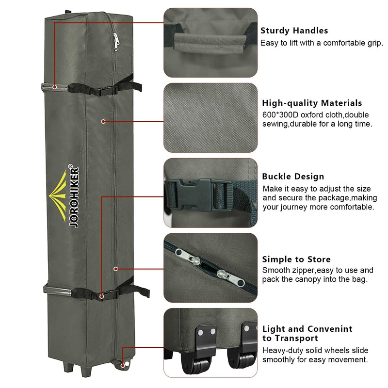 - 【Easy Storage】: When your canopy is not in use, you can conveniently store it in the roller bag, keeping all components together and ready for the next event. It's a valuable accessory that provides storage and organization, enhances the overall functionality and convenience of your pop-up canopy setup