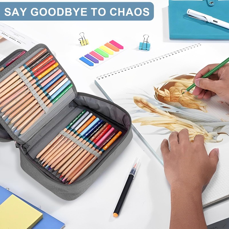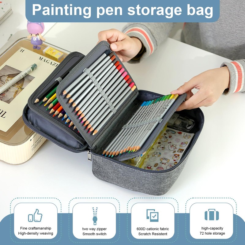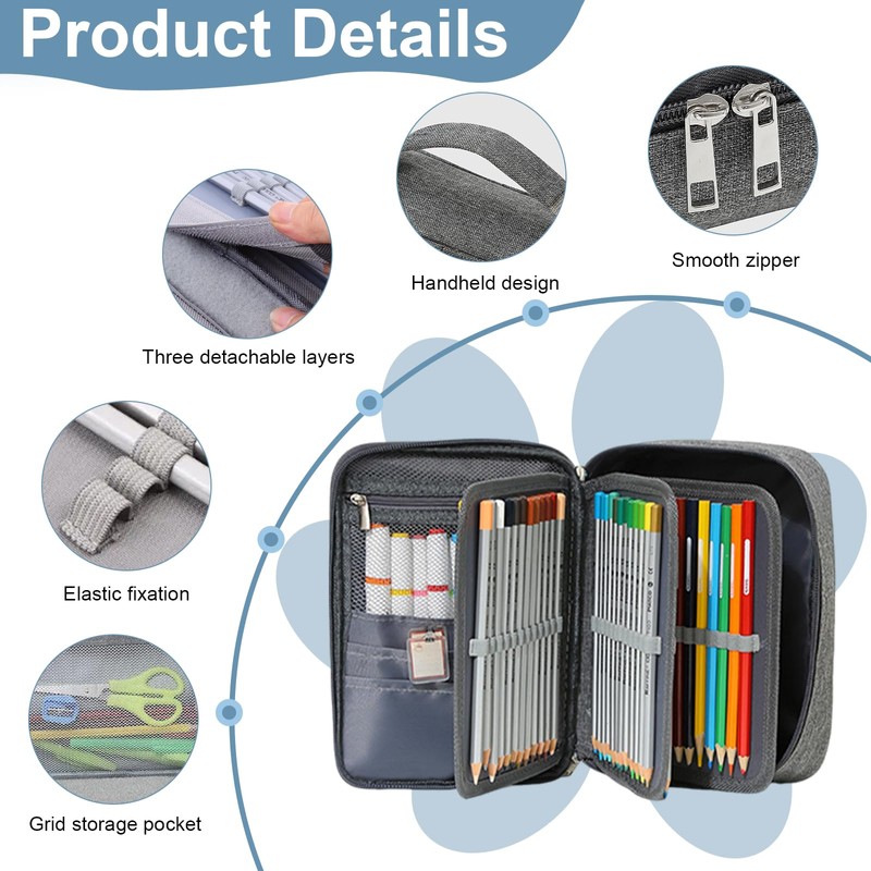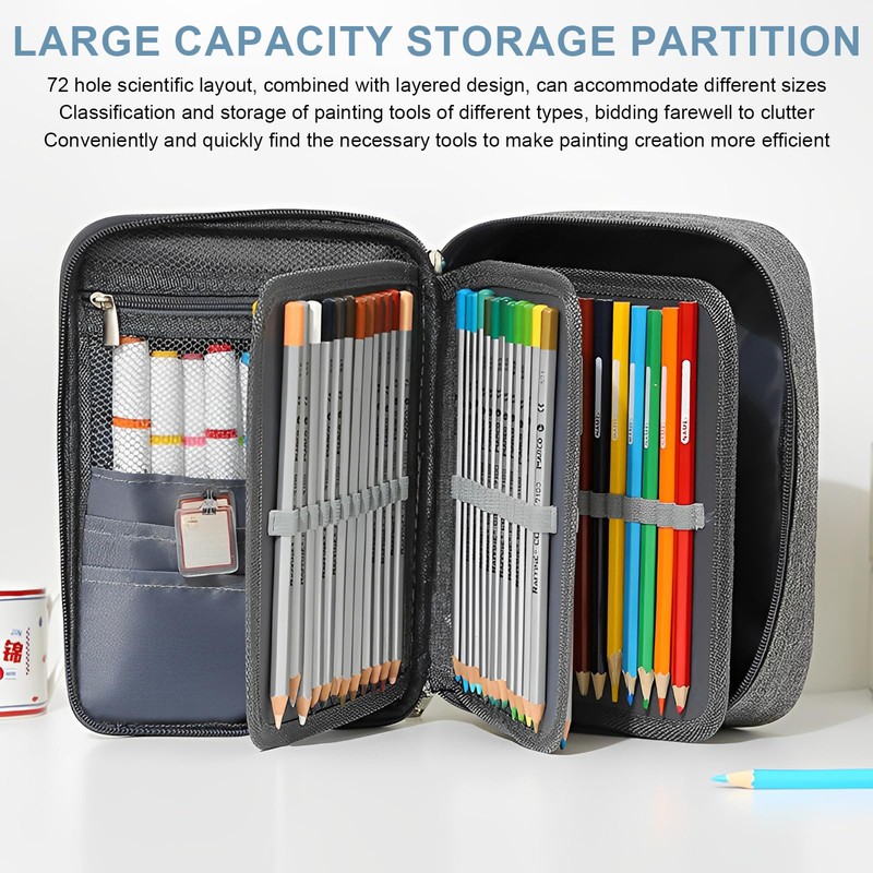 Jortmrd Large Pencil Case, Pencil Case, 4 Compartments, 72 Compartments, Grey, ALL