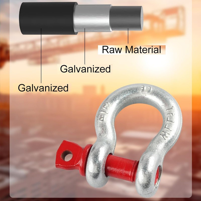 - Robust and durable: made of high-strength steel and finished with a robust hot-dip galvanised surface, the shackle offers excellent corrosion resistance and durability. They are used to absorb tensile forces and are particularly resilient, thus increasing safety. (WLL:2.0t)