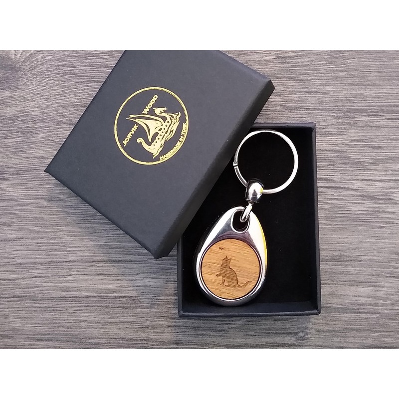 Jorvik Wood Cat Design Wooden Keyring, Cat with Butterfly Keychain with Gift Box
