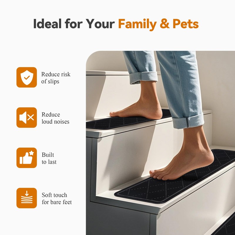 - 【Soft & Quiet Comfort】 Made from high-quality polyester, our stair treads indoor are built to withstand daily wear and tear while remaining soft and comfortable underfoot. They not only reduce noise when walking up and down the stairs but also provides insulation against cold surfaces.