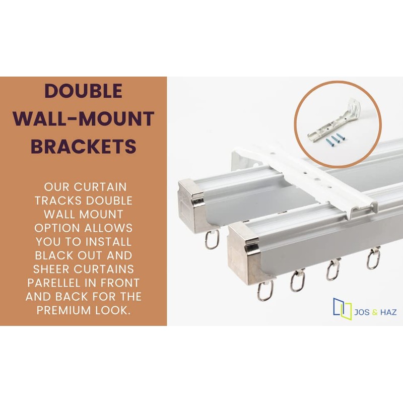 - ✅WIDE RANGE OF APPLICATION: Now you can bring the look of hotel curtains to your own space. Our double wall mount curtain track brackets can be installed anywhere you like. Suitable for Ceiling Mount Curtain Track for Living room, Shower , Bedrooms, Drop Ceiling, Bay window, RV , Privacy, Hotel, Hospital, Classrooms Cubicle hanging or anywhere you like. Our Curtain tracks Double Wall mount option allows you to install black out and sheer curtains parellel for the dream look.