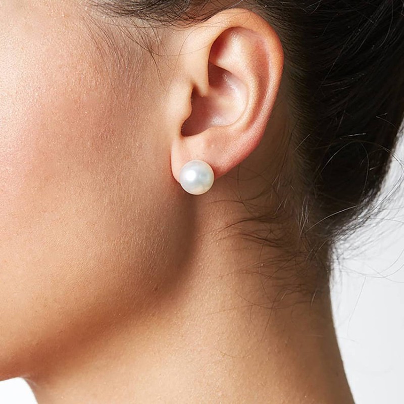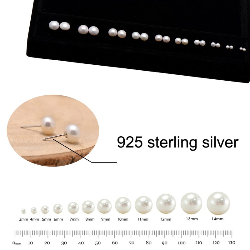 - This earring stud design is the minimalist, only two white pearls on the earlobe; 3-14mm various of pearl sizes, tiny, medium, large are all available