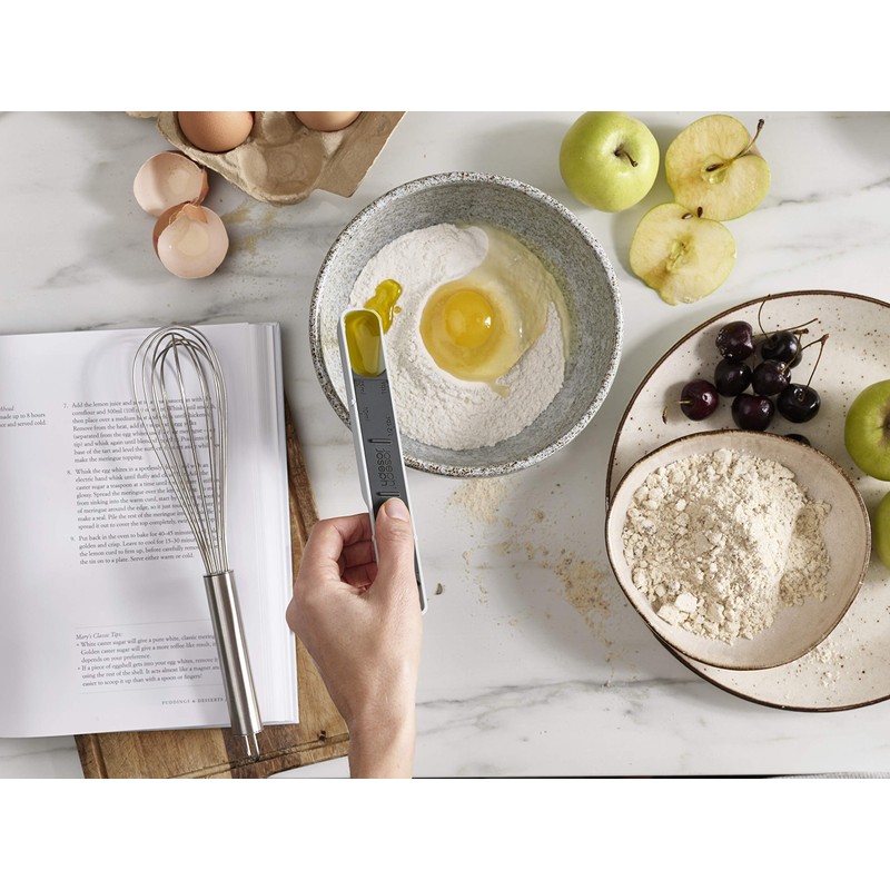 - Measures dry ingredients from ¼ tsp up to 1 tbsp