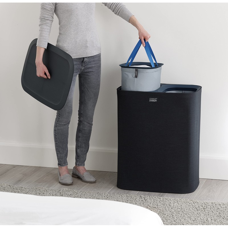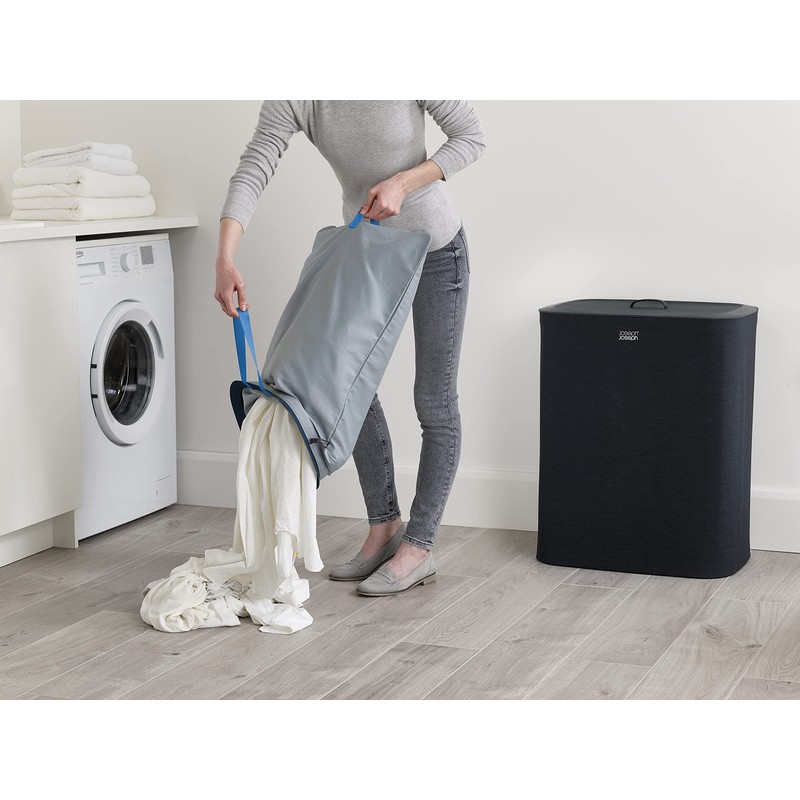 Joseph Joseph Tota 90-liter Laundry Hamper Separation Basket with lid, 2 Removable Washing Bags with Handles - Carbon Black