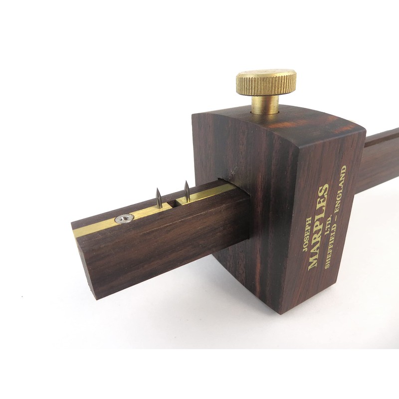 Joseph Marples Adjustable Pin Marking/Mortise Gauge Solid Rosewood Square Head with Pull-Slide Pin Adjustment