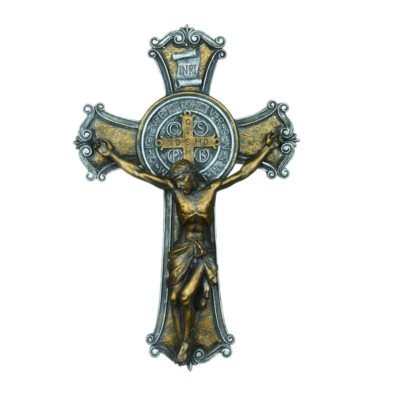 - CRAFTSMANSHIP: St. Benedict crucifix is from the famous Joseph's Studio Crucifix Collection. This collection is prized for the great attention to color and detail, and is focused on the position of the figure's hands, face and body. Gold and silver toned detail and textures of the crucifix complement each other beautifully and make for a powerful image of the cross.