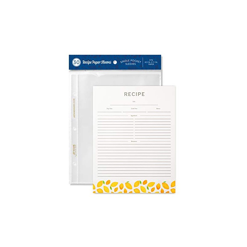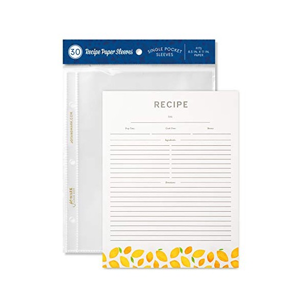 Jot & Mark Recipe Card Paper Full Page 8.5x11 with Crystal Clear Page Protectors for 3 Ring Binder, 30 Count (Lemon Twist)