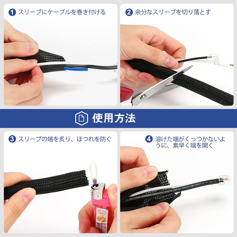 • 🍓絶縁ワイヤーラップなので、感電の心配はありません。使い方も簡単で、ケーブルをまとめて、スリーブを巻き付けるだけです。