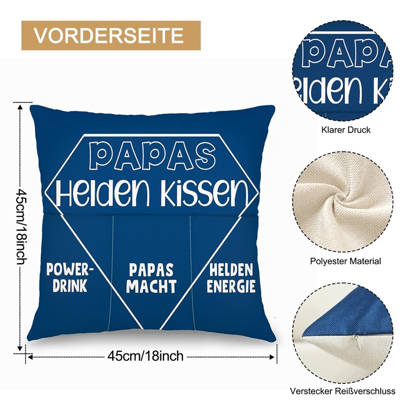 JOTOM Decorative Cushion Cover with 3 Pockets to Fill Yourself 45 x 45 cm Cushion Cover Great Gift (Dads Hero Cushion)