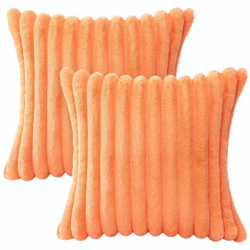 JOTOM Set of 2 Double-Sided Faux Fur Plush Cushion Covers 45x45 cm Soft Striped Decorative Throw Pillow Covers Square Cushion Case Home Decor Pillow Cases for Couch Sofa Bed 18x18 Inch (Orange)