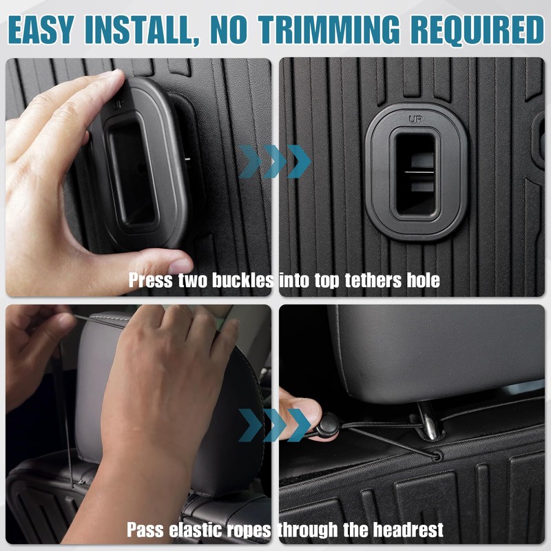 - Triple Fixation: The mats are equipped with hook and loop fasteners, fixing elastic ropes and custom buckles, triple fixation allows mats to be firmly attached to the seat back and prevent displacement