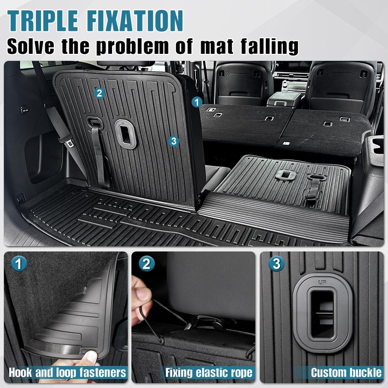 - Custom Fit: The cargo mat with backrest mats features a 2-in-1 design and is compatible with the 2024 Hyundai Santa Fe. The package includes 1 pcs cargo mat with backrest mat and 2 buckles