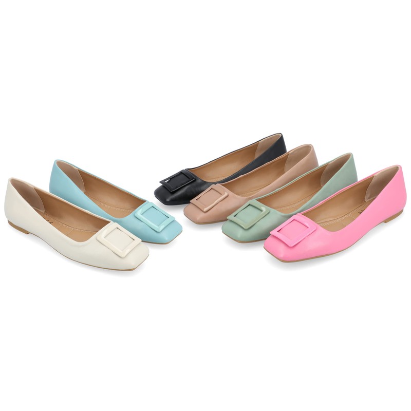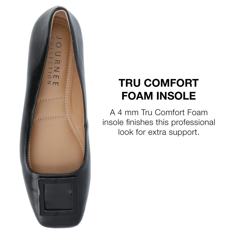 - The Zimia flats from Journee Collection are so timeless and stylish you'll want to wear them everywhere. Upper Material: Vegan Leather Toe Style: Square Heel Height/Type: Flat Sole Closure Type: Slip-On Shoe Width: Medium Footbed: 4 mm Tru Comfort Foam All measurements are approximate and were taken using a size 6. Please note measurements may vary slightly by size.