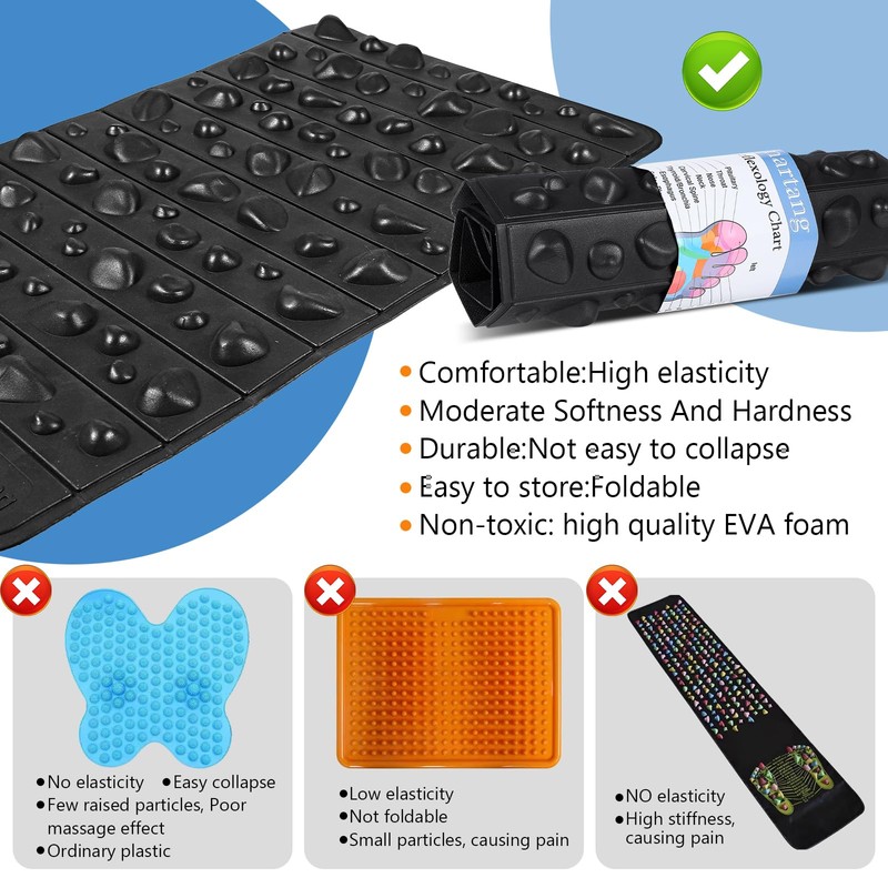 - 𝐍𝐞𝐰 𝐃𝐞𝐬𝐢𝐠𝐧:Foot massage pad adopts a high-rebound particle convex design and will not collapse.Compared with the pain caused by other hard plastic particles and rock mat,the foot reflexology mat allows you to perform foot massage comfortably.