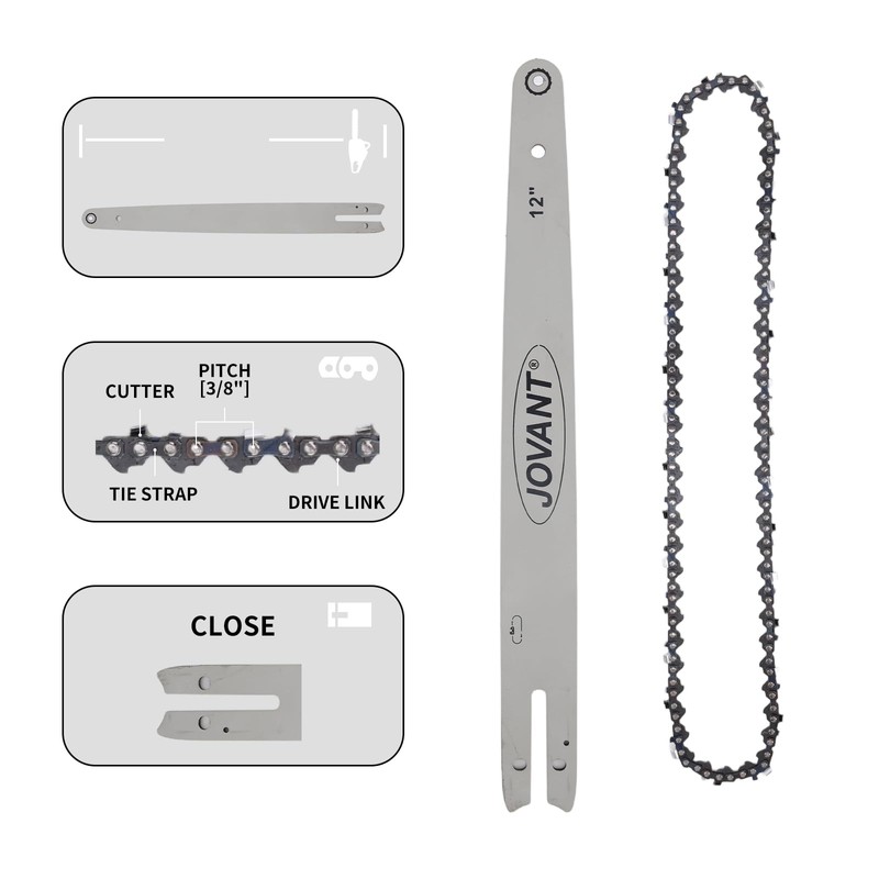 - 12 Inch Chainsaw Guide and Chain Combo-Replacement Part:Drive Link: 62;Pitch:1/4 inch low profile.Fits JOVANT 12 inch chainsaws and pole saws.