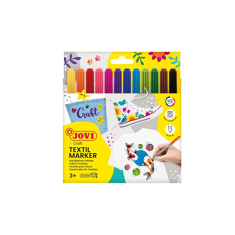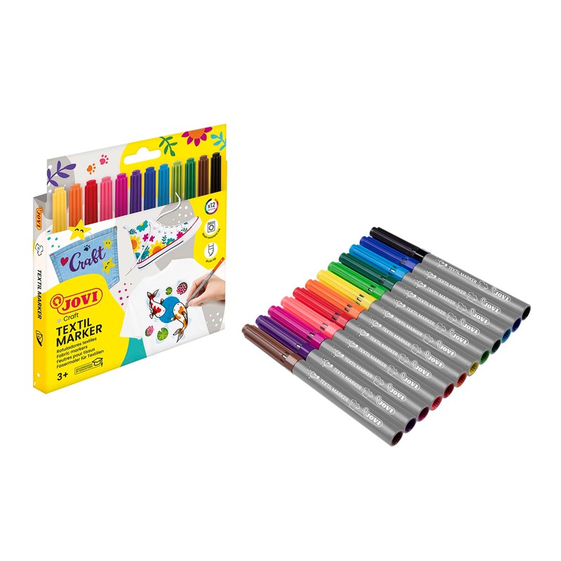 - With the Jovi textile markers in many vibrant colours, you can personalise fabrics and clothing. With safe water-based ink, suitable for ages 5 and up