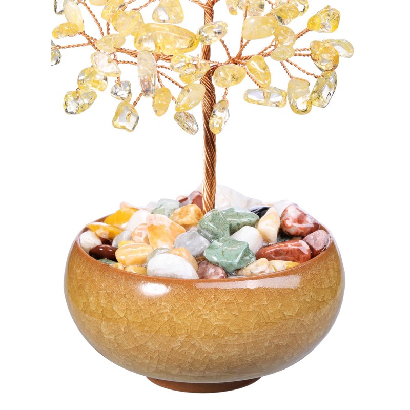Jovivi Citrine Crystal Trees Gemstone Healing Crystals Money Tree Bonsai Ceramic Base Feng Shui Tree Life,Good Luck Reiki Positive Energy, Home Office Desk Decor