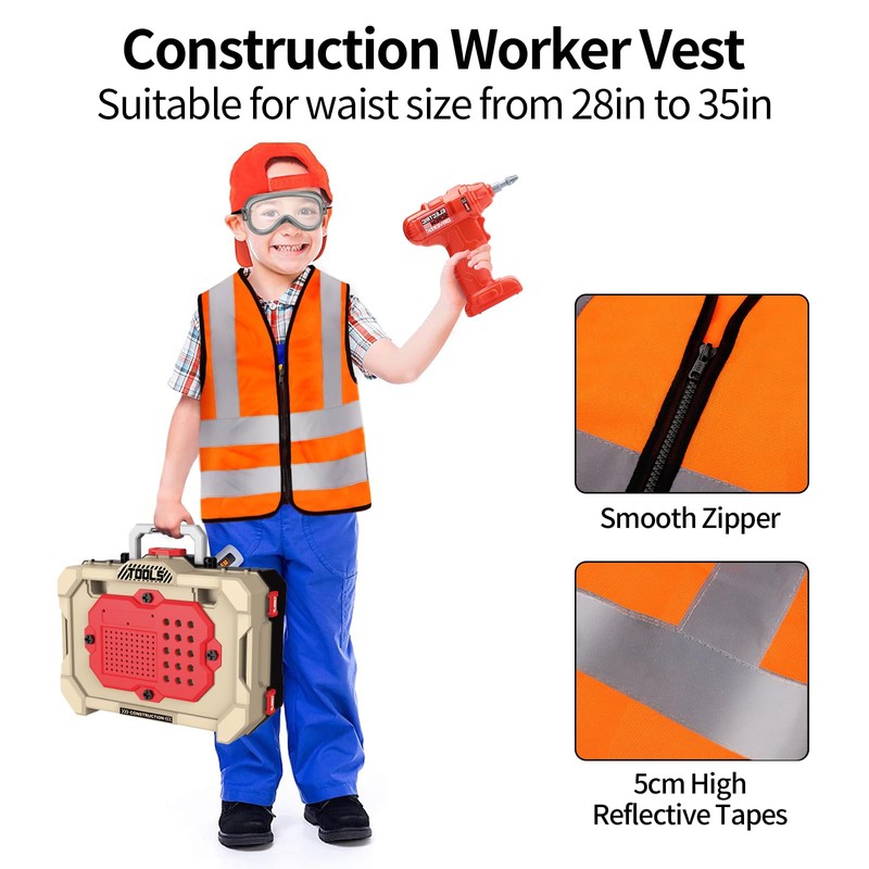 - 【Kids Workbench with Clothes】Put on an engineering suit and turn your little builder into a outstanding engineer! Let your child play for hours at a time and stimulate their imagination, which helps children to be more creative and develop new skills from an early age.