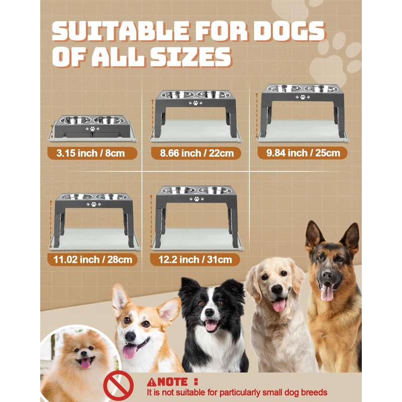 - Great Gift Choice for your petty dog: Our dog food bowls elevated have 5 heights adjustable stands for dogs of all sizes, adjustable Elevated Dog Bowls can grow with your dog from puppy to senior. Believe that your puppy will be very happy to receive this wonderful gift!