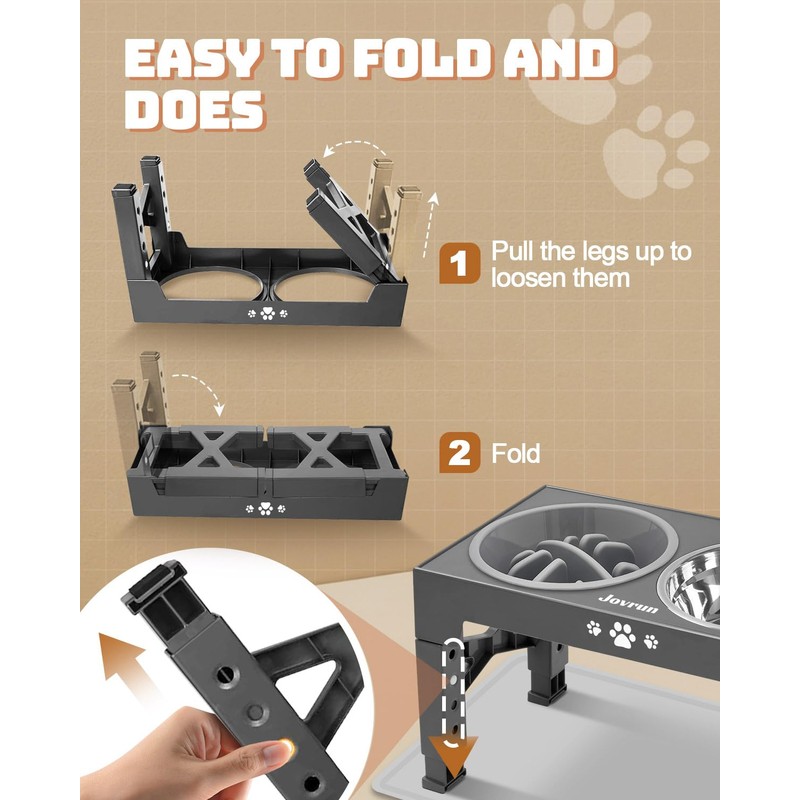 - Easy to Use Anti-slip Stand: Elevated pet bowls with antislip feet make it stable and prevent sliding, offering protection for your floors also. Noise-free rubber rim for your dog to enjoy quiet dining. Fold and store the legs with a simple push of a button after use.