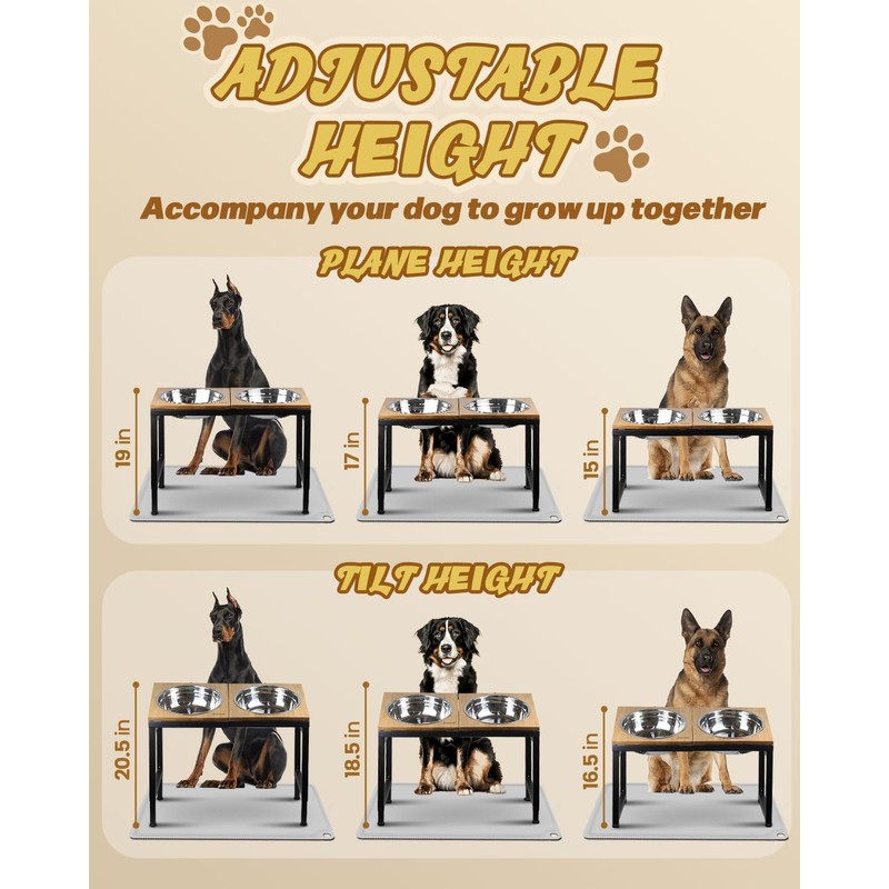 - For Large Extra Large Dogs: Our elevated dog bowls are designed to meet the needs of large dogs. Our large dog bowls elevated has 3+3 adjustment modes, and this adjustable dog bowl can be set from 15 to 20.5 inches in height, so your big doggy can eat at a comfortable angle. The bowl has an impressive 11-inch diameter, and a substantial 150oz/4500ML capacity ensures that you can fill the bowl with plenty of dog treats, satisfying your dog's hunger without the need for constant refills.