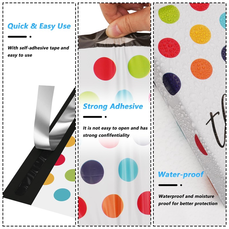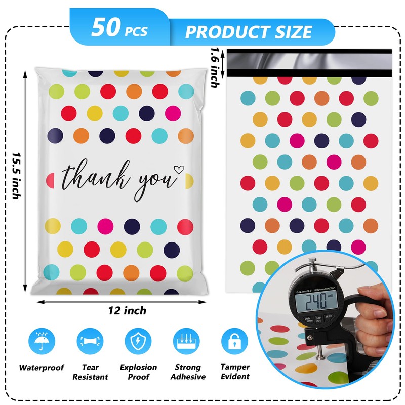 Jowlroel Thank You Poly Mailer 12x15.5 Inch 50 Pcs, Waterproof and Tear-Resistant Shipping Bags for Clothing, Cute Mailing Bags with Self-Seal, Polka Dots Printed Mailing Envelopes