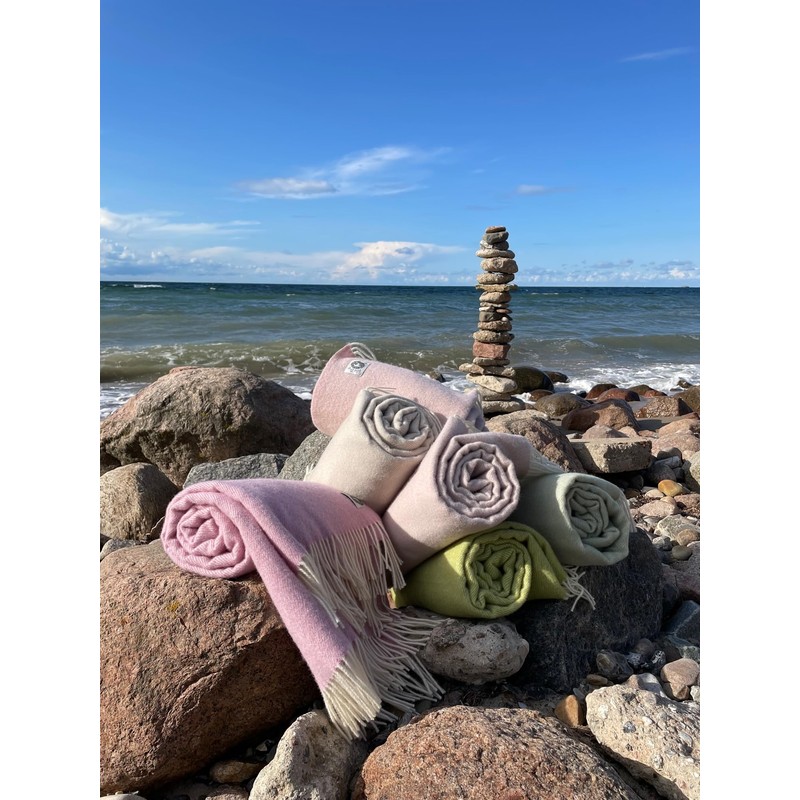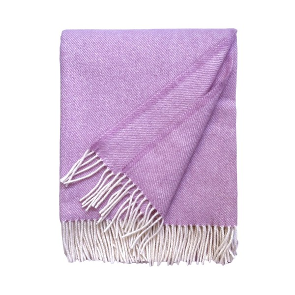 JOWOLLINA Wool Blanket Plaid with Fringes 100% Virgin Wool (145 x 180 cm, Plain Pink)