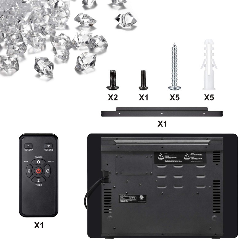 Joy Pebble 30 Inch Electric Fireplace Inserts, in-Wall Recessed and Wall Mounted 750/1500W Fireplace Heater, Touch Screen, Remote Control with Timer, Adjustable Flame Color and Speed