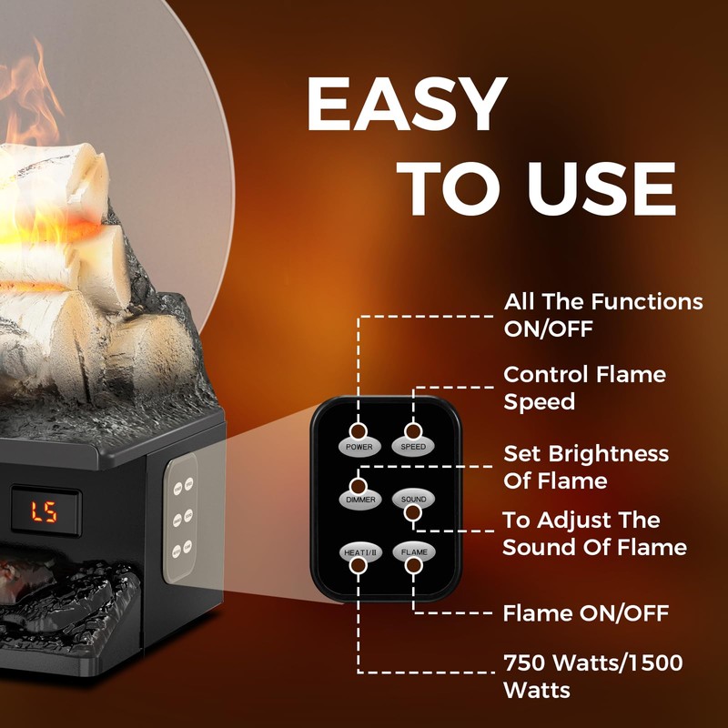 - 【Upgraded design & easy to use】Compared to other electric log, this fireplace Heater has a glowing resin cast logs and embers , electric fireplace inserts with Remote Controller and simple control panel, To adjust the heat temperature and flame brightness,The rear projecting flame effects randomly reflect off the back surface of your fireplace. enjoy the pleasant glow of a fire.