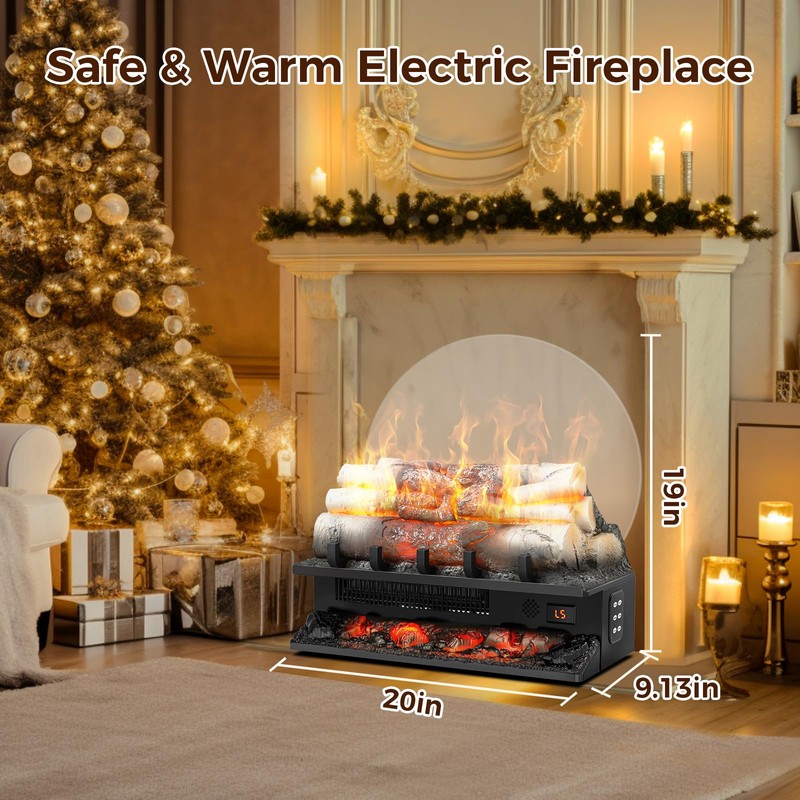 - 【Vent-free Heater】This is a cost-effective faux fireplace logs which means no need dealing with smoke and sweeping chimney,The flames appear to rise and flicker just like White Birch wood burning fire without without the mess smoke and smell, the 1500W Electric Fireplace bring precise district heating and decorting for your room.